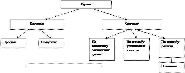 Срочные сделки – это сделки, исполнение которых предполагается осуществить в будущих периодах времени. В зависимости от механизма заключения сделки, способа установления цены и способа расчета они могут иметь определенные разновидности.