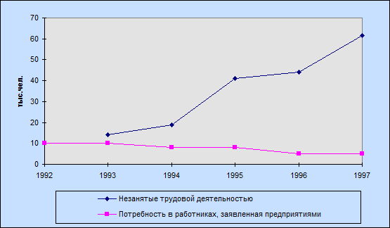 Современный рынок труда в России, и в нашей республике обладает рядом специфических черт, которые обусловлены сложившимися социально-политическими и экономическими условиями. Он все еще дифференцирован, поскольку функционирует под воздействием экономического спада и структурной перестройки хронического бюджетного дефицита, в условиях только зарождающейся многоукладной экономики, господства монополизма, неразвитости рынков инвестиции, информации, которую сдерживает перелив капитала и труда между отраслями и регионами страны, усиливая разбалансированность спроса и предложения рабочей силы.