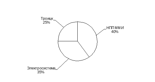 Поддержка в виде обучения персонала предприятий, приобретающих станки, гарантийного и послегарантийного сервисного обслуживания, обеспечения потребителей необходимой технологией. Поставщики Поставщики: фирма “Платан”, “Chip&Dip” г. Москва. Конкуренты Конкуренты: завод “Электросистема” (г. Киров), “Троицкий станкостроительный завод”. (г. Уфа). На рисунке 2 приведена доля занимаемого рынка оборудования для размерной электрохимической обработки материалов России. Сильные стороны конкурентов: наличие собственных производственных мощностей; высокий уровень подготовки инженерного и научного состава; Элемент стратегии конкурента “Электросистема” заключен в “приближении” к покупателям – развитие дилерской и обслуживающей сети. Использование данной стратегии возможно при высоком начальном финансовом и организационном вложении и наличии второй заинтересованной в роли дилера стороны.