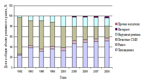 За последнее десятилетие в экономике России наблюдается стремительный рост рекламного рынка, активно влияющего на развитие рыночных отношений в стране. Этот процесс сопровождается формированием крупного отечественного рекламного бизнеса, вливающегося постепенно в деятельность мирового рекламного рынка.