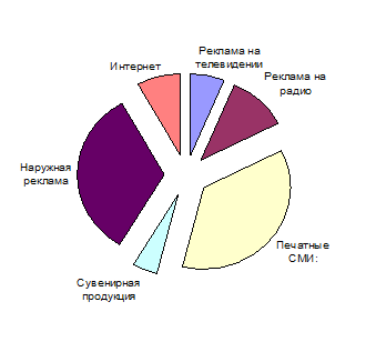 Рисунок 13 – Распределение бюджета рекламной кампании по видам рекламных средств