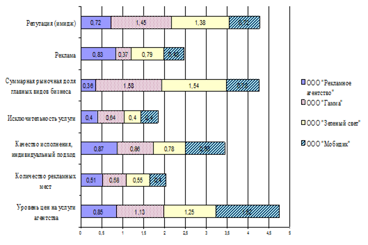 3.5 Интегральная оценка конкурентоспособности ООО «Рекламное агентство»