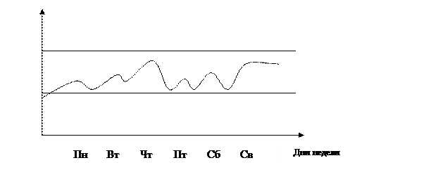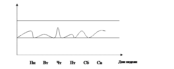 Как видно из представленных графиков, в течении недели показатели изменялись волнообразно, наблюдались периоды повышение показателя выручки, но также и повышения показателя расходов. В целом, показатели не превышали ранее установленных наибольших значений, но и не понижались до критического количества; однако, в самом начале недели объем поступлений был опасно низок.