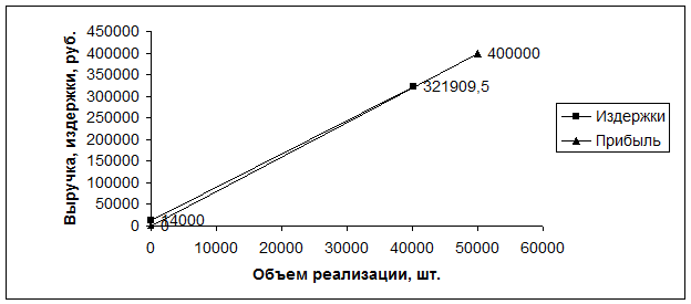 Точка безубыточности наступает при Выручке – 321909,5 рублей, и объеме продаж 40238 шт.