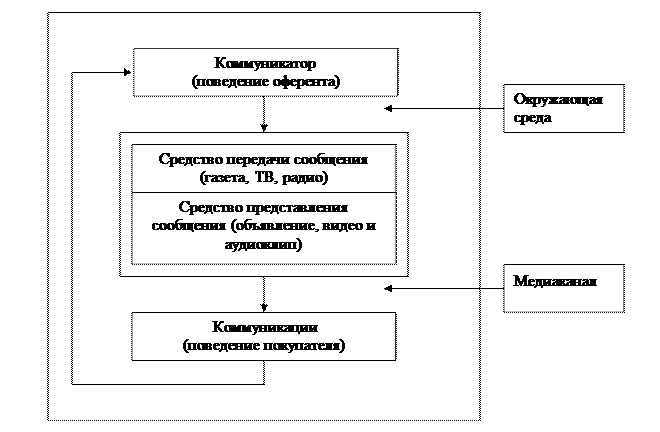 Маркетинговые коммуникации инициируются и осуществляются коммуникатором в определенных условиях (окружающая среда). Посредством какого-либо материального носителя (стена, газета) и какого-либо средства (плакат, объявление) объект коммуникации (информация, сообщение) доводится до коммуниканта.