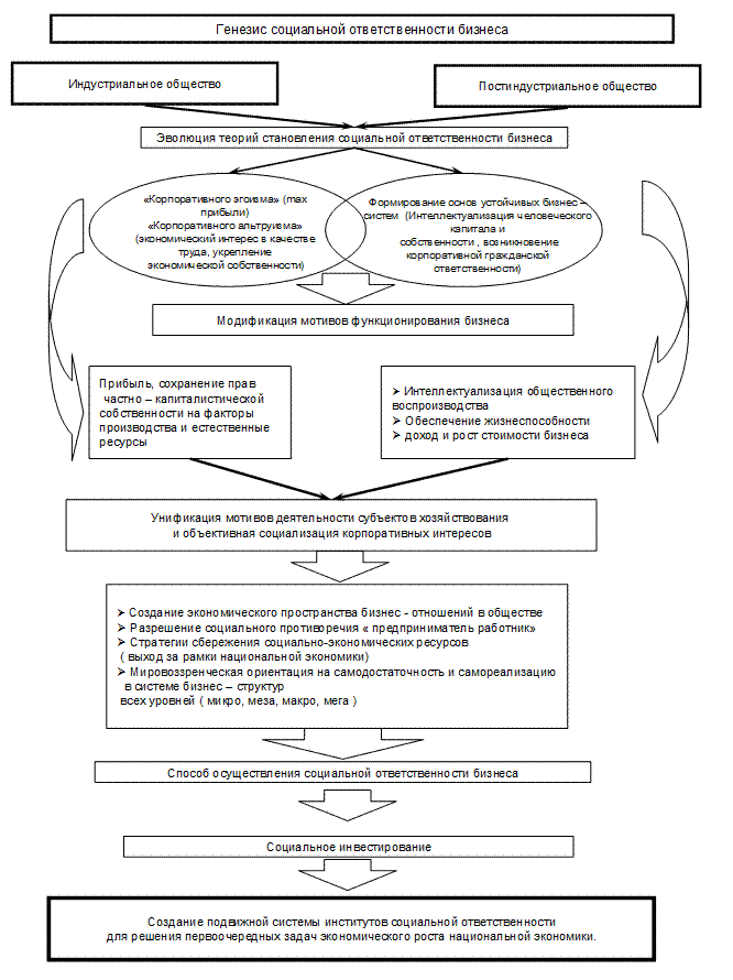 Исследование объективных основ и конкретных форм реализации социальной ответственности бизнеса связано с необходимостью определения фундаментальных причин ее функционирования и тенденций развития в мировом сообществе в процессе интеллектуализации общественного производства.