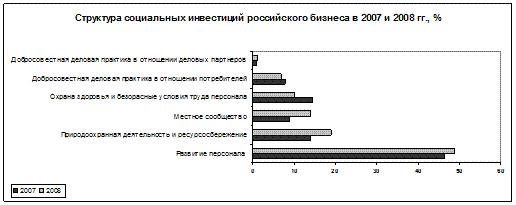 Источник: Исследование «Индекс социальных инвестиций российского бизнеса – 2008г.». – Национальный доклад о социальных инвестициях в России. М.: 2008. с.59.