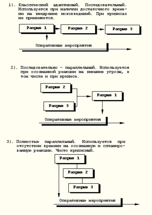 При такой постановке проблемы кризисной следует считать любую ситуацию, в которой предприятие не успевает подготовиться к внешним изменениям и потеря им финансовой устойчивости становится неизбежной. Соответственно, уже до внешнего проявления трудностей появляется потребность в принятии экстренных мер для минимизации потерь. Недостаточная активность нововведений и связанная с этим неспособность вовремя адаптироваться к меняющимся условиям приводит к кризису не только крупные, но и небольшие фирмы, работающие на динамичных рынках.