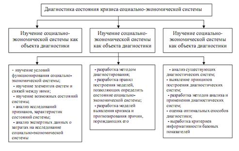 В диагностике кризиса социально-экономической системы и причин, его порождающих, можно выделить: