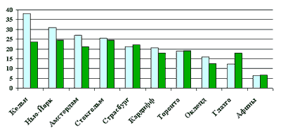 Применительно к городу маркетинг осуществляется аналогично маркетингу региона, но с учетом особенностей собственно городского образа жизни. Одна из них - высокая (относительно сельских районов) стоимость жизни в городах, особенно - в крупных. Именно этот показатель, наряду с обеспеченностью современными городскими удобствами и благами, выступает одним из ведущих. Стоимость жизни в городах мира особенно важна для оценки перспектив миграции и развития рынка туристических услуг. Но пока статистическая и аналитическая работа в этом направлении ведется эпизодически, усилия разрознены[1]