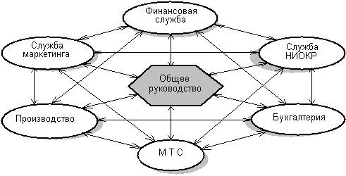Такое деление на сферы деятельности носит условный характер и конкретизируется в общей и производственной организационной структурах. На нашем уровне рассмотрения эти сферы деятельности связаны основными информационными потоками в управлении предприятием.