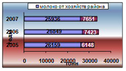 Если проанализировать выше приведённую таблицу, то можно отметить, что объём произведённой продукции за анализируемый период возрастает, что в первую очередь связано с ростом цен, на реализуемые товары, и ростом объёмов их производства, не смотря на уменьшение мощностей по производству масла (по причине не рентабельности данной продукции). Особенно заметно увеличение выпуска таких товаров как сыр о творог, что связано с их относительно долгими сроками хранения.
