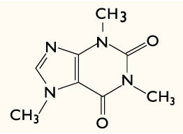 O. По строению и фармакологическим свойствам кофеин близок к теобромину и теофиллину; все три алкалоида относятся к группе метилксантинов. Кофеин лучше действует на центральную нервную систему, а теофиллин и теобромин – в качестве стимуляторов сердечной деятельности и лёгких мочегонных средств.