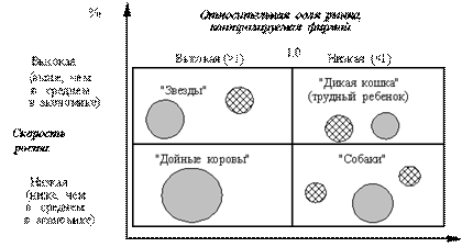 Как видно из данных табл. 2., в отношении каждой СБЕ необходима своя стратегия, которая прежде всего определяется тем, емкостью рынка стадией жизненного цикла товара, долей рынка и уровнем рентабельности.