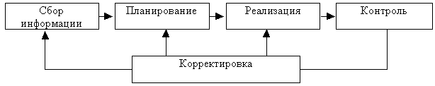 Планирование заканчивается перед началом действий по реализации плана. Планирование - это начальный этап управления, однако оно представляет собой не единственный акт, а процесс, продолжающийся до завершения планируемого комплекса операций (рис.1.).