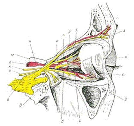 глазничный нерв (первая ветвь тройничного нерва, CN V)