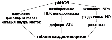 • перегрузка кардиомиоцитов кальцием (их гибель путем НЕКРОЗА);