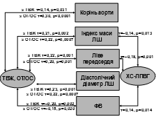 Особистий внесок здобувача. Автор особисто провела аналіз наукової літератури за темою дослідження, розробила план і методи вирішення поставлених завдань, проаналізувала та інтерпретувала отримані результати. Діагностика хвороб, включаючи антропометричні вимірювання, ультрасонографічні дослідження серця та органів черевної порожнини, оцінка стану хворого та вибір тактики лікування проводилися здобувачем самостійно.