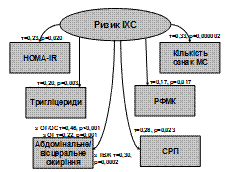 Визначено предиктори виникнення ЦД 2-го типу та ІХС, які дозволяють оцінити ризик цих хвороб у пацієнтів з МС, що важливо для проведення лікувально-профілактичних заходів.