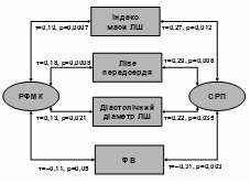 Вперше встановлено U-подібний зв'язок між ІР та рівнем загального холестерину (ЗХС) і обернену залежність між нею та активністю піруватдегідрогенази (ПДГ) капілярної крові. Доведено, що в пацієнтів з МС у поєднанні з НАЖХП значно частіше виявляється ІР. На основі виявлених асоціацій опрацьовано предиктори виникнення ЦД у пацієнтів з МС.