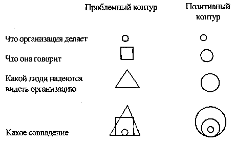 Далее Г.Левинсон предлагает еще один иллюстративный подход к выяснению расхождений между реальным и желаемым имиджем организации. Г.Левинсон утверждает, что восприятие любой организации представляет собой смесь того, что она делает, и того, какой она должна быть по мнению людей. Если эти две вещи совпадают - имидж организации гармоничный. (Levinson Harry. How to Undermine an Organization // Public Relations Journal. - 1966, October. - Vol. 22, № 10.-P. 82-84).
