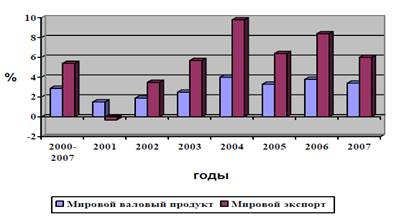 Торговля готовыми продуктами растет быстрее, чем торговля сельскохозяйственными товарами, топливом и продукцией добывающих отраслей. Экспорт готовых изделий увеличился на 7,5 процентов за 2007, оставляя за собой лидерство по отношению к продукции сельского хозяйства и топлива и добывающих отраслей, которые увеличились на 5% и 3%, соответственно.Уменьшение роста обмена готовыми изделия от 10-процентного уровня, достигнутого в 2006, происходило частично вследствие замедления экономического развития в главных импортирующих экономиках.Азиатский экспорт готовых изделий, увеличился на 13,5%, в то время как житель Северной Америки и европеец увеличили экспорт только на 4,5%, соответственно на 4 цента. Европа, экспорт сельскохозяйственных изделия из которой составляет 46% мирового, увеличила его на 19%. Азия, второй по величине поставщик с долей 19%, увеличила экспорт сельскохозяйственных изделий до 20%. Экспорт из Северной Америки, третий по величине поставщик, повысился на 17%. Ее доля в мировой торговле уменьшилась с 21% в 2000г. до 16% в 2007г., в среднем экспортный рост в течение этого периода ниже мирового (6% против 11% мирового). Южная и Центральная Америка зарегистрировали самый высокий темп роста с 2000 года – 23,4%.Цены на топливо и продукцию добывающих отраслей увеличились на 11% в 2007г. Как результат, цена мирового экспорта повысилась на 15%, самый низкий показатель с 2003 г. Рост был замедлен во всех регионах кроме СНГ, которое увеличило экспорт на 19 процентов.Повышение цен на полезные ископаемые и цветные металлы (с 56% в 2006 г. к 17,5% в 2007) затронуло особенно экспорт добывающих отраслей Южной и Центральной Америки (рост уменьшился с 55% в 2006 до 20% в 2007г.). Топливный экспорт с Ближнего Востока в Азию, которая является его самым важным торговым партнером (65% общего экспорта), увеличился на 13% по сравнению с 28% в предыдущем году. Однако, спрос со стороны Китая и Индии оставался высоким, и увеличил импорт на 26%.Приблизительно с 7%-ным увеличением в средних ценах в 2007 г. и непрерывном расширением объемов торговли, цена мировой экспорта готовых изделий повысилась на 15%. Европа увеличила свой экспорт на 16,3%, что приближено к показателям 2005 и 2006 гг. Азия поддержала почти тот же самый уровень роста как в 2006 г. (15,7%). Северная Америка зарегистрировала самыйнизкий рост (8,5%). СНГ стало лидером в росте экспорта готовых изделий. Импорт готовых изделий в СНГ рос в среднем ежегодно на 30% с 2000 до 2007 г. В результате, 3,6% европейского экспорта готовых изделий (удвоился уровень 2000 г.) теперь идет в СНГ, в то время как азиатский экспорт в СНГ достиг ежегодного среднего показателя 43% за тот же период . Внутрирегиональная торговля составляет более высокую долю мировой торговли чем 234 торговля между регионами.