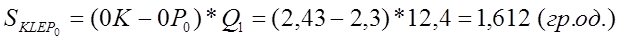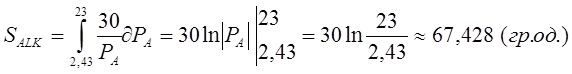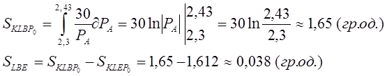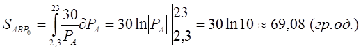 Обсяг втрат споживача відповідає площі фігури LBE . Оскільки фігура LBE є криволінійною, то спочатку розрахуємо площу криволінійної фігури KLBP0 , а потім від отриманої площі віднімимо площу прямокутника KLEP0 (яка вже була попередньо визначена при розрахунку обсягу сплати податку споживачем, тобто 1,612), в результаті чого і отримаємо розмір обсягу втрат споживача :