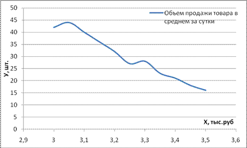 Фирма осуществляет производство и продажу товара через сеть фирменных магазинов. Данные о цене товара и объеме проданных товаров в среднем за сутки, в одном из географических сегментов рынка приведены в таблице 1.