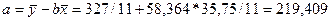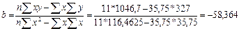Произведем сглаживосние по прямой, т.е. построим зависимость У=а+вХ
