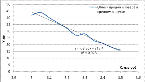 Обозначим: «Х» - цена товара, «У» - объем продаж