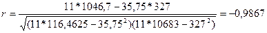 3. Определить тесноту связи между ценой и объемом продажи товара.
