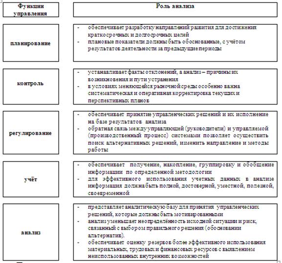 Экономический анализ занимает центральное место в системе управления предприятием. Сущность управления раскрывается в его функциях, тесно взаимосвязанных между собой.