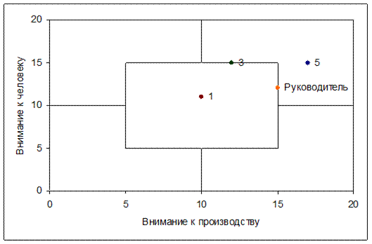 По данным теста построим «управленческую решетку» Блэйка – Моутона (рисунок 5.3).