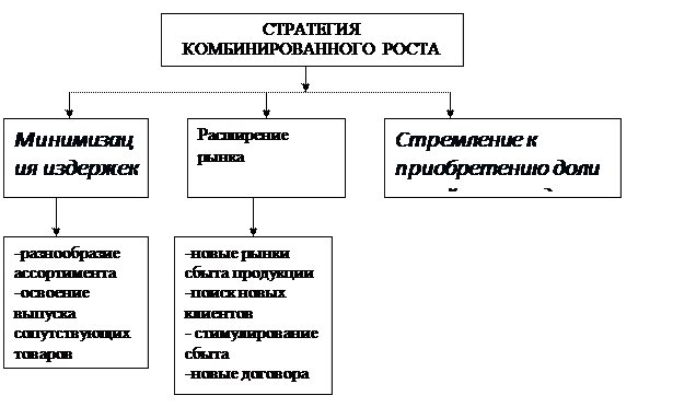 А на данном этапе руководству фирму ЗАО «Мебель-дизайн» необходимо обеспечить реализацию стратегии комбинированного роста, что приведет к реализации намеченных целей