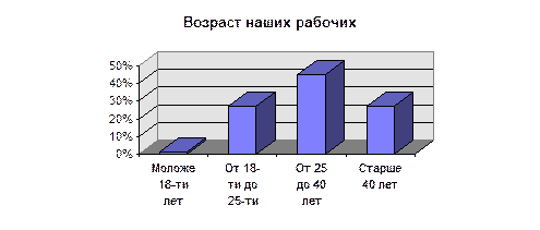 На предприятии работают 1800 человек, 1400 из которых - рабочих.