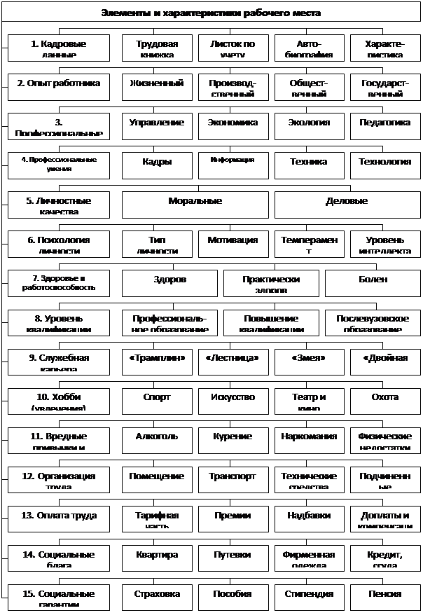 В практической деятельности часто используют упрощенные модели рабочего места. Например: «Срочно требуется экономист – женщина, образование высшее, выпускник ВНУ, возраст до 35 лет, опыт работы вЧП».
