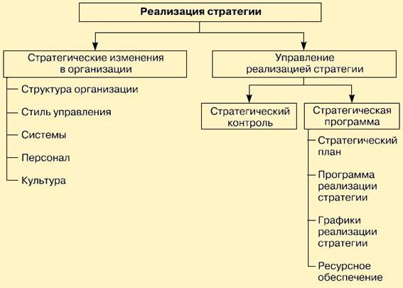 Таким образом, реализация стратегии включает проведение стратегических изменений в организации, переводящих ее в такое состояние, в котором организация будет готова к проведению стратегии в жизнь.