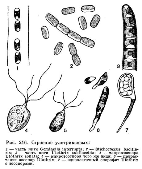 (Stichococcus, рис. 216, 2). Водоросли, входящие в эту группу, ведут наземный образ жизни.