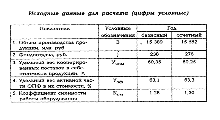Исходные данные для факторного анализа фондоотдачи приведены в табл. 4.4.