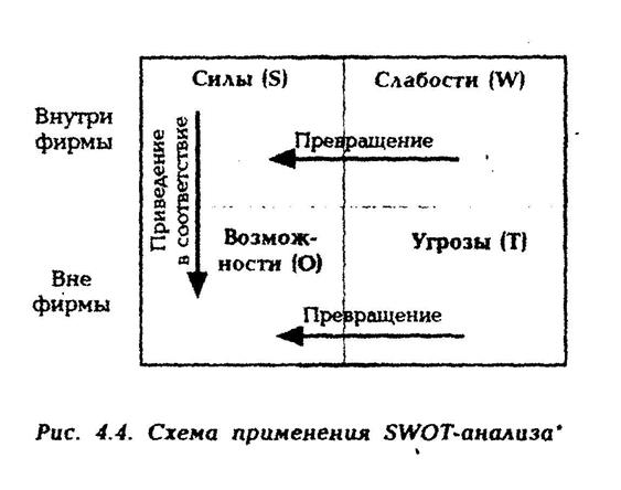 При разработке стратегических планов многие фирмы применяют SWOT-анализ (рис. 4.4).