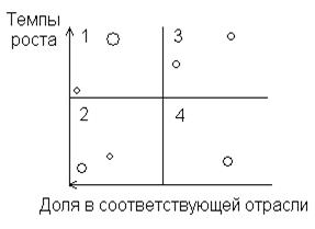 В систему координат, образованную двумя не коррелирующими между собой показателями, помещают точки – кружки, символизирующие фирмы (рис. 1). Размер кружка отображает величину фирмы. Можно продемонстрировать еще одну характеристику – тенденции динамики показателей (стрелками).
