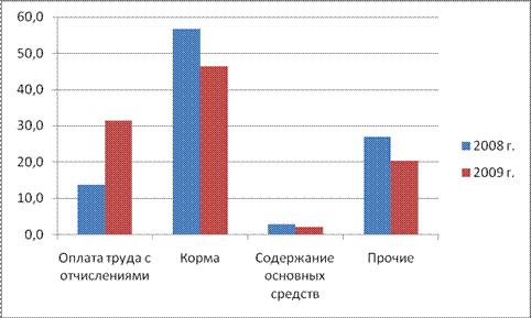 Анализ показал, что сокращение себестоимости молока привело к росту прибыли на 1018046 руб., сокращение объемов реализации молока привело к сокращению прибыли на 66472 руб., а падение отпускных цена – к уменьшению прибыли на 1639574 руб.; таким образом общее снижение прибыли в 2009 г. (по сравнению с 2008 г.) составило 688 тыс. руб.