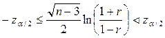 Область принятия гипотезы о нулевой корреляции имеет вид: