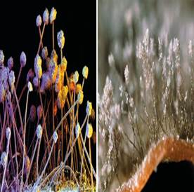 Плесневые грибы — организмы многоклеточные и потому заведомо проигрывают своим главным соперникам — бактериям в скорости размножения. Но у них есть другое оружие — микотоксины, убивающие бактерий (а иногда и некоторых других конкурентов, в том числе и другие виды плесени) или подавляющие их рост. Многие из этих «боевых отравляющих веществ» человек взял на вооружение — сегодня они известны нам под именем антибиотиков. Но самое неприятное в жизни сапрофита — это то, что любая порция еды рано или поздно кончается. Лишенный органов передвижения гриб не может отправиться на поиски нового источника пищи. Все, что ему остается, это произвести на свет множество спор — легчайших капсул, защищенных от высыхания, высоких и низких температур и прочих губительных факторов. В каждой такой капсуле заключена живая клетка гриба; ее жизнедеятельность почти остановлена, но при попадании на подходящую среду она немедленно разрастается в новое пятно плесени.