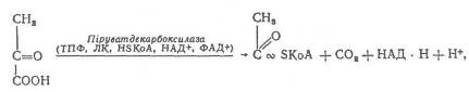 Піровиноградна кислота внаслідок декарбоксилювання перетворюється на ацетил-КоА, який може використовуватись для синтезу вищих жирних кислот.