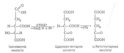 Після дезамінування α-амінокислот утворюються безазотисті сполуки. Ми вже знаємо, що в основному це α-кетокислоти, які на певних ділянках включаються в цикл трикарбонових кислот, де піддаються дегідруванню і декарбоксилюванню, і зрештою перетворюються в Н2