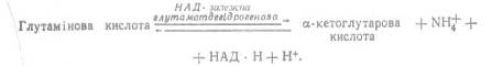 Отже, незалежно від початкових реакцій трансамінування кінцевим акцептором аміногруп більшості амінокислот є а-кетоглутарова кислота. Перетворюючись у глутамінову кислоту, вона служить каналом, за допомогою якого аміногрупи передаються в заключну серію реакцій, які ведуть до утворення кінцевих продуктів азотистого обміну.