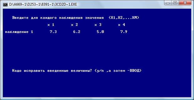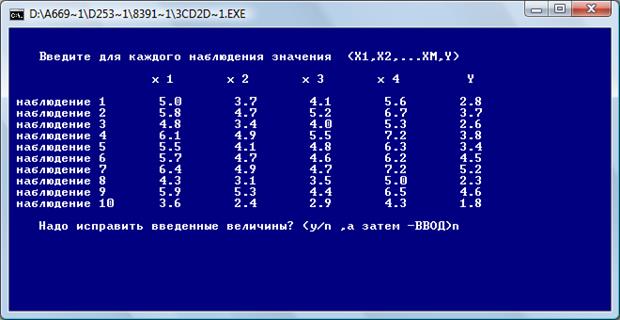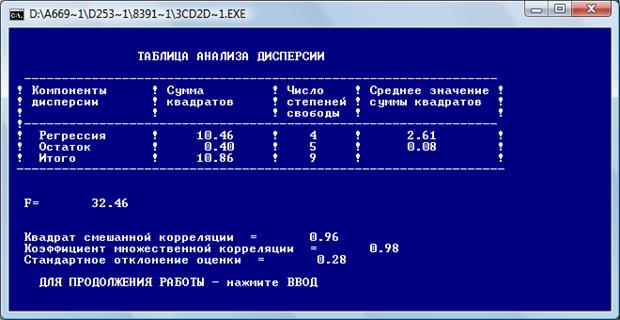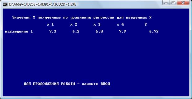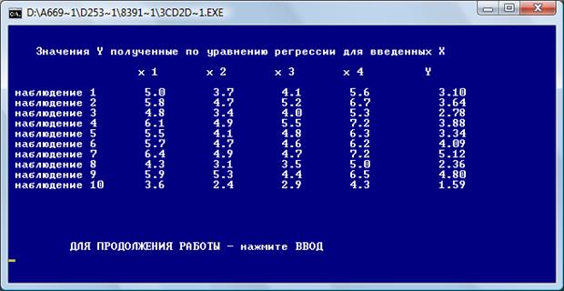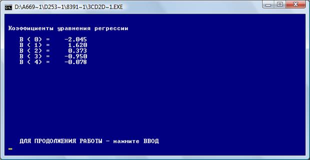 После нажатия «Ввод» получаем коэффициенты четырехфакторной регрессии: