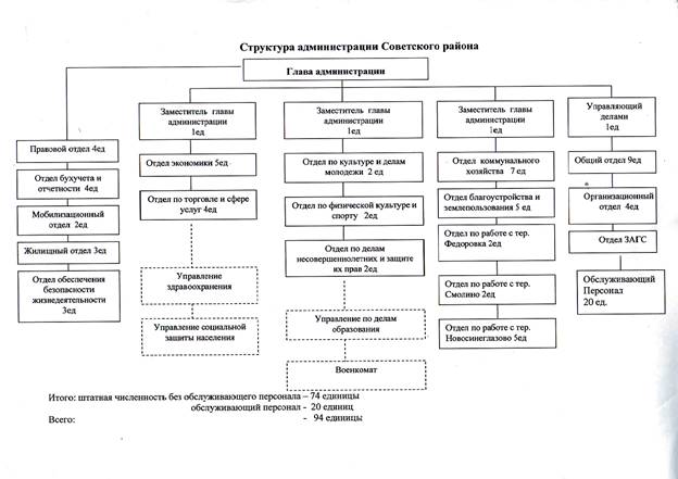 Проанализировав деятельность работы администрации Советского района города Челябинска можно сделать следующие выводы: