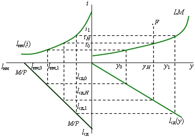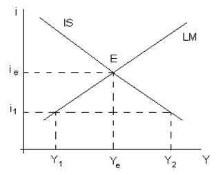 ). Другие величины ставки процента и уровня дохода означают неравновесие на одном или обоих рынках. Например, при ставке процента i1